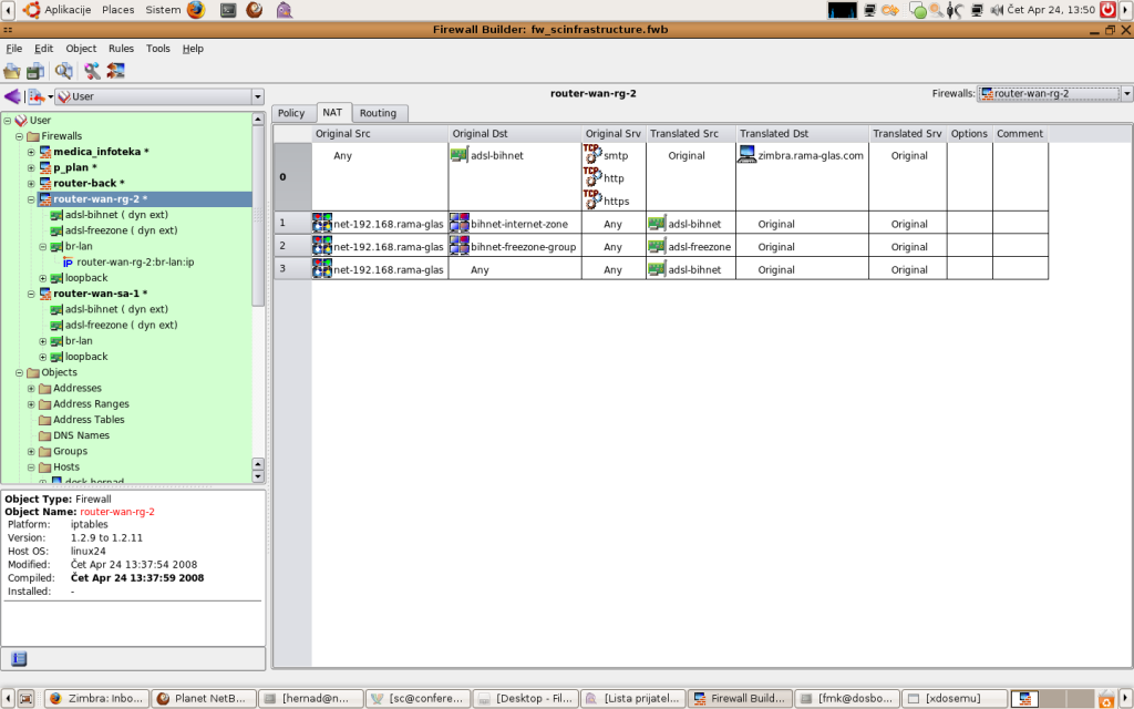 Dobar primjer dijagnosticiranja firewall-a možemo naći na router-wan-rg-2.rama-glas.com openwrt, 192.168.45.55.254